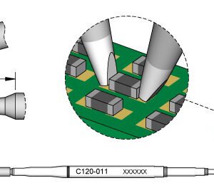 C120 cartridges are appropriate for soldering and desoldering chip components or dual in-line easily, reducing handling time. The C120 series are compatible with PA120 and AM120 tweezers. Tips are sold individually, not in pairs.