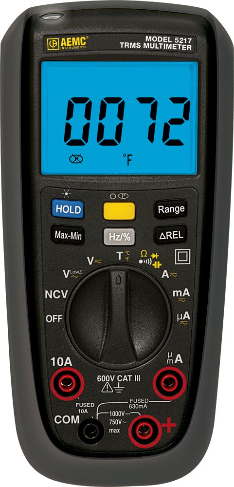 The Model 5217 is a portable hand-held multimeter that measures a variety of electrical and physical quantities including voltage (AC and DC), resistance, capacitance, frequency, and temperature. These instruments can also perform continuity checks, voltage detection, and diode testing (including forward bias voltage). Measurement features include Auto Range mode, which enables the instrument to select the best range for the input detected, and a Data HOLD function. These instruments are rugged and simple to use and rated to 600V CAT III.