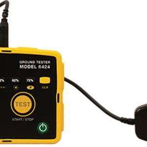 The Digital Ground Resistance Tester Model 6424 performs 2-pole and 3-pole ground resistance measurement. This direct reading tester is auto-ranging, so it automatically seeks out the optimum measurement range. The Model 6424 is easy to use – simply connect the leads, press to measure, and read. The large LCD also indicates low battery status, overrange, and lead reversals.