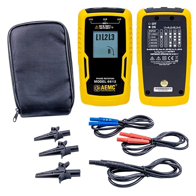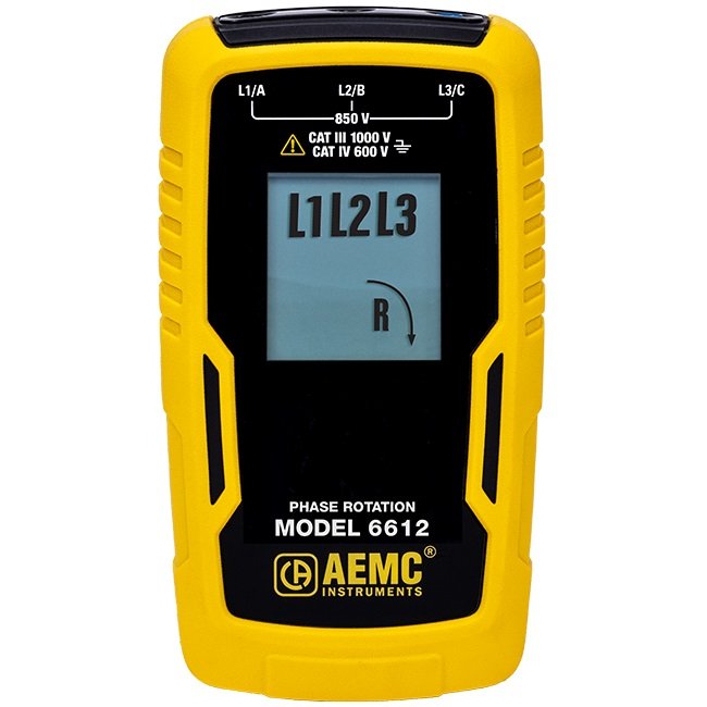 The Phase Rotation Meter Model 6612 is a compact and rugged meter designed to identify phase rotation on 3-Phase systems and identify live and open/de-energized phases. Ideal for installing rotating machinery or motors, and for checking generator output.