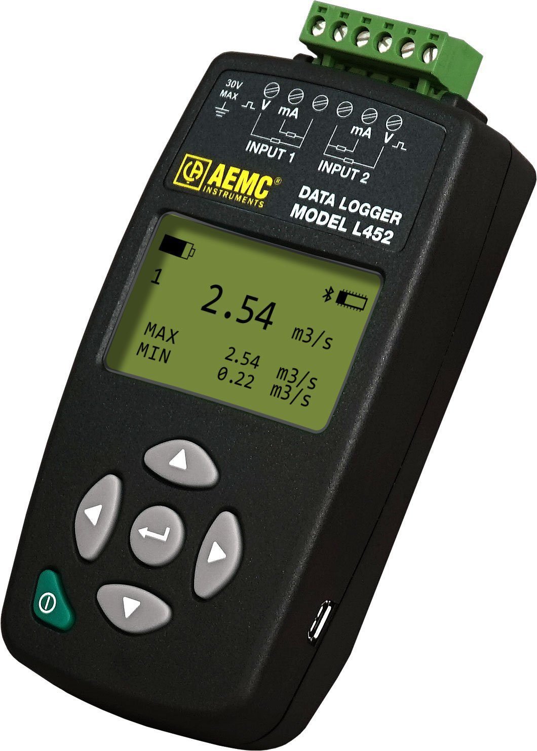 The Model L452 is a low-cost, simple-to-use, two-channel data logger. It records DC voltage, DC current, pulses and events. Its two input channels allow the user to connect to various types of sensors in order to record data such as pressure, temperature, flow, humidity and more. This logger can also be used to record events such as machine run time. Each channel’s real-time measurement is displayed on the LCD screen.