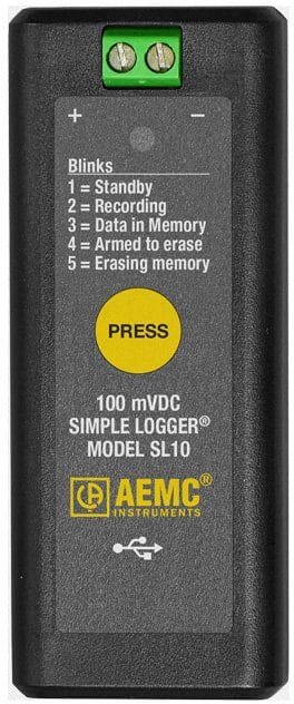 The Simple Logger Model SL10 is a small one-channel recording device powered by two AA alkaline batteries. It can also be powered by 5V using the USB interface cable supplied. The input is 0 – 100mVDC facilitated by two screw terminals. The sample rate is 16/sec with a storage rate of once per second of the average of all the samples. Application software is included with the unit by plugging it into your computer using the USB cable and downloading it from our website. Scaling units of measure and recording length can be set through the software. Real-time graphs can be displayed, downloaded data can be analyzed, and reports printed.
