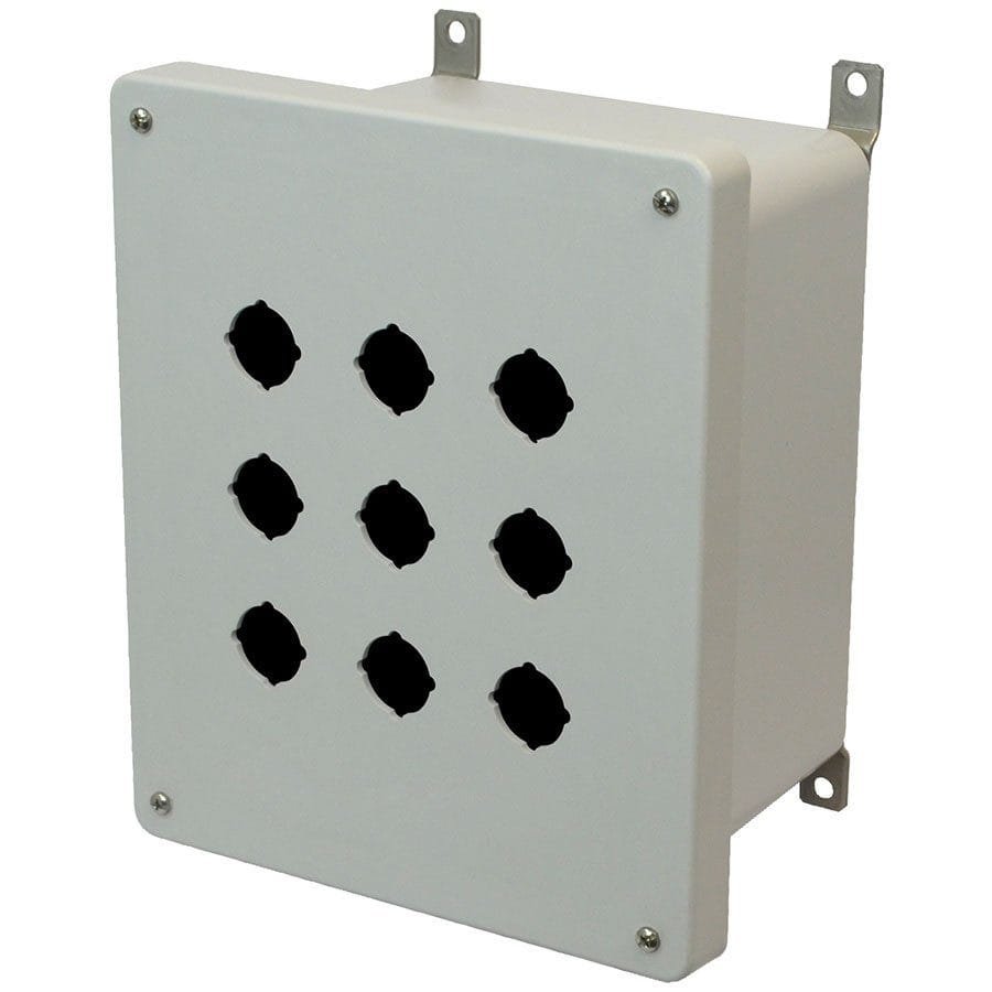 AM Series boxes are designed to insulate and protect controls and components in both indoor and outdoor applications and are especially well suited for high temperature or corrosive environments. They feature flat covers with a variety of latching options that allow you to provide the level of security or ease of access needed for each application. The AM Series offers a wide variety of sizes and configurations, including Small junction boxes, Inline pushbutton enclosures in one, two, or three hole configurations and two hole sizes, Standard JIC size enclosures.