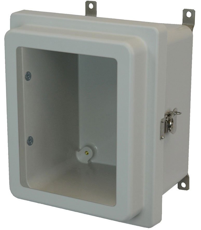 Allied Moulded AM1086RTW – 10x8x6 NEMA 4X Fiberglass Enclosure with Raised Twist Latch Hinged Cover with Window