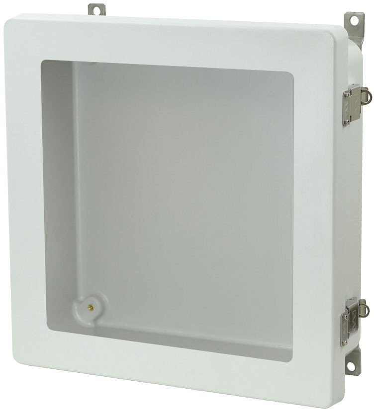 Allied Moulded AM1224LW 12″x12″x4″ AM Series Fiberglass Wall Mount Enclosure Assembly with Hinged Window Cover and Stainless-Steel Snap Latch