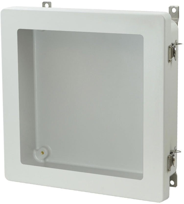Allied Moulded AM1224TW 12″x12″x4″ AM Series Fiberglass Wall Mount Enclosure Assembly with Hinged Window Cover and Stainless-Steel Twist Latch