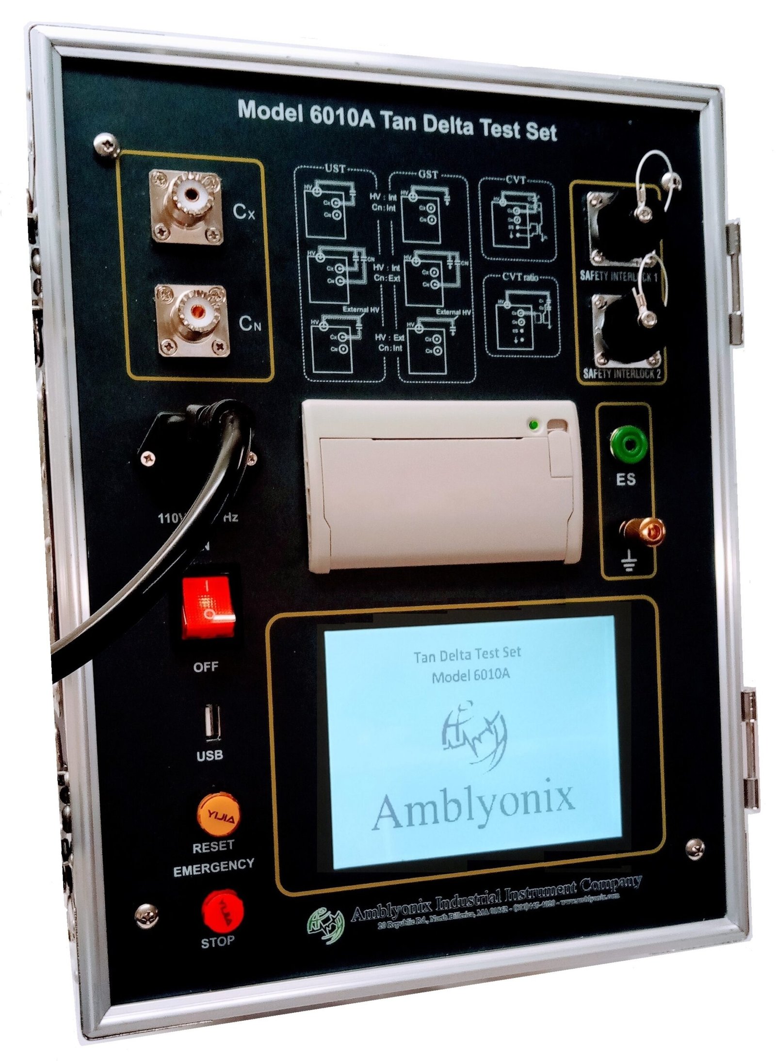 Performing dielectric loss measurements is a basic method of insulation testing that effectively detects damp and otherwise degraded insulation of electrical equipment. The Amblyonix 6010A is a Capacitance and Tan Delta Test set that has been designed to be portable and simple to operate. It is perfectly suited to conduct a variety of non-destructive insulation integrity tests on a broad range of electrical devices and cables.