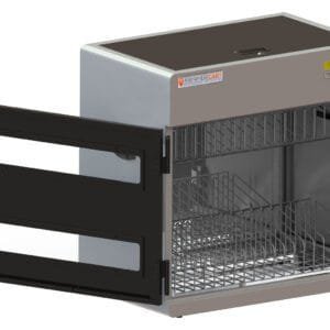 The disinfecting process takes as little as two minutes, and is done without toxic chemicals or harmful gasses. It’s the perfect solution for keeping any environment safe and features heavy duty full metal construction, configurable metal shelves, eight UVC lamps for 360° sterilization, an easy to use touch screen, plus additional software with wireless monitoring. An auto locking door ensures operation only when the door is securely closed, and a UV absorbing transparent window helps to keep light from being emitted into your room.