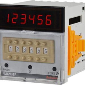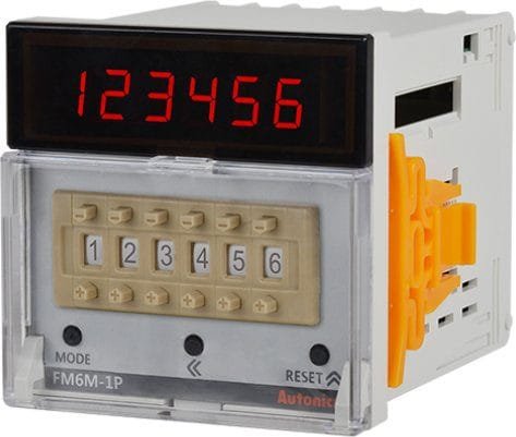 The FM series measure counters can preset multiple or divisor for 1 input pulse and display the calculated value in multiply-mode and divide-modes. The counters feature counting speeds of 1 cps, 30 cps, 300 cps, 2 kcps, and 5 kcps and decimal point display function (fixed decimal point). The FM series counters feature a standard DIN size of W 72 x H 72 mm and are available in 4-digit and 6-digit models.
