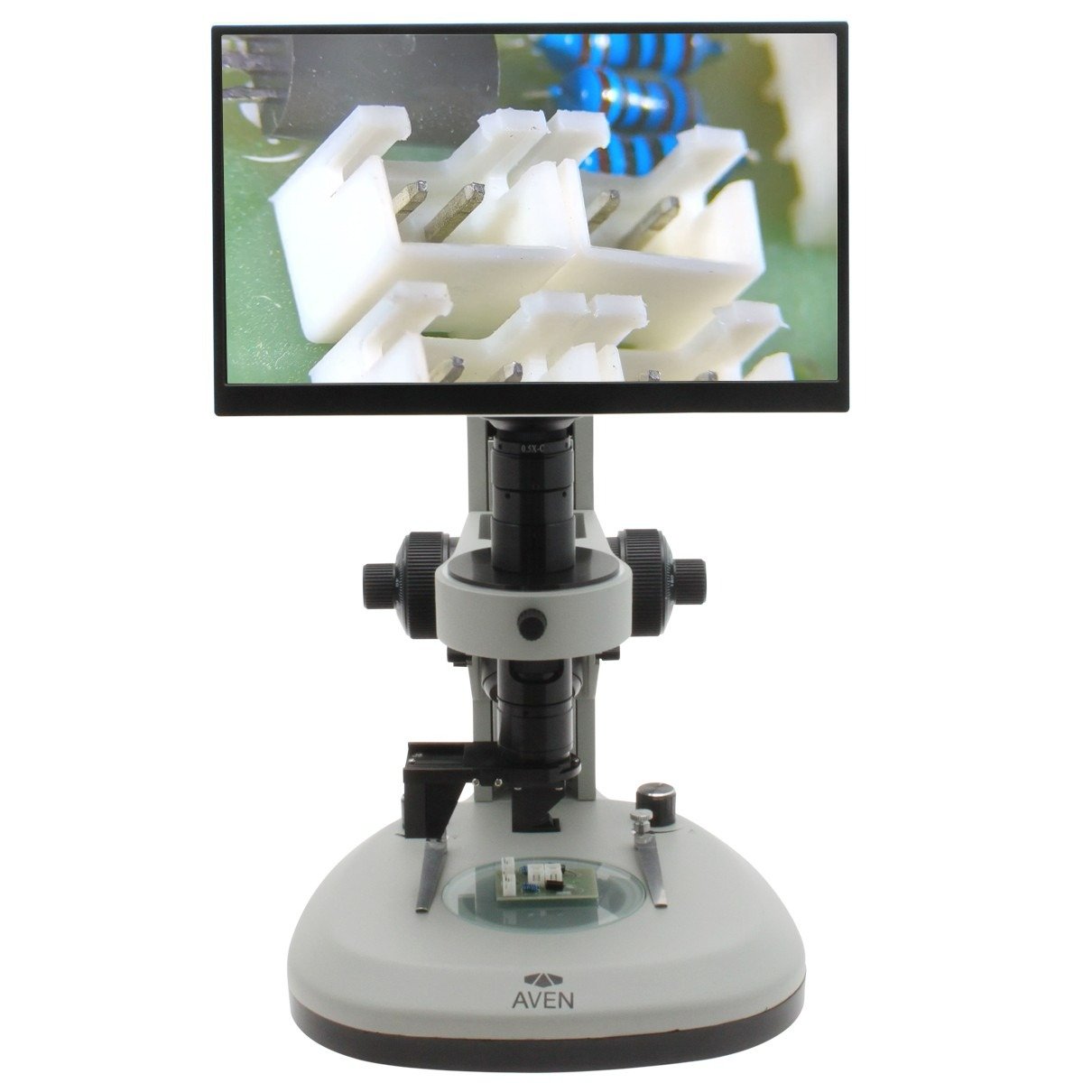 The Aven Tools 26700-151-C05-260506 is a digital microscope system consisting of the Mighty Cam Eidos camera with a built-in 11.6-inch HD monitor, a detented micro lens with 0.5x coupler, 360 Viewer, lens adapter plate, and track stand with top and bottom adjustable LED’s. It provides a magnification range of 13.3x to 94.4x.