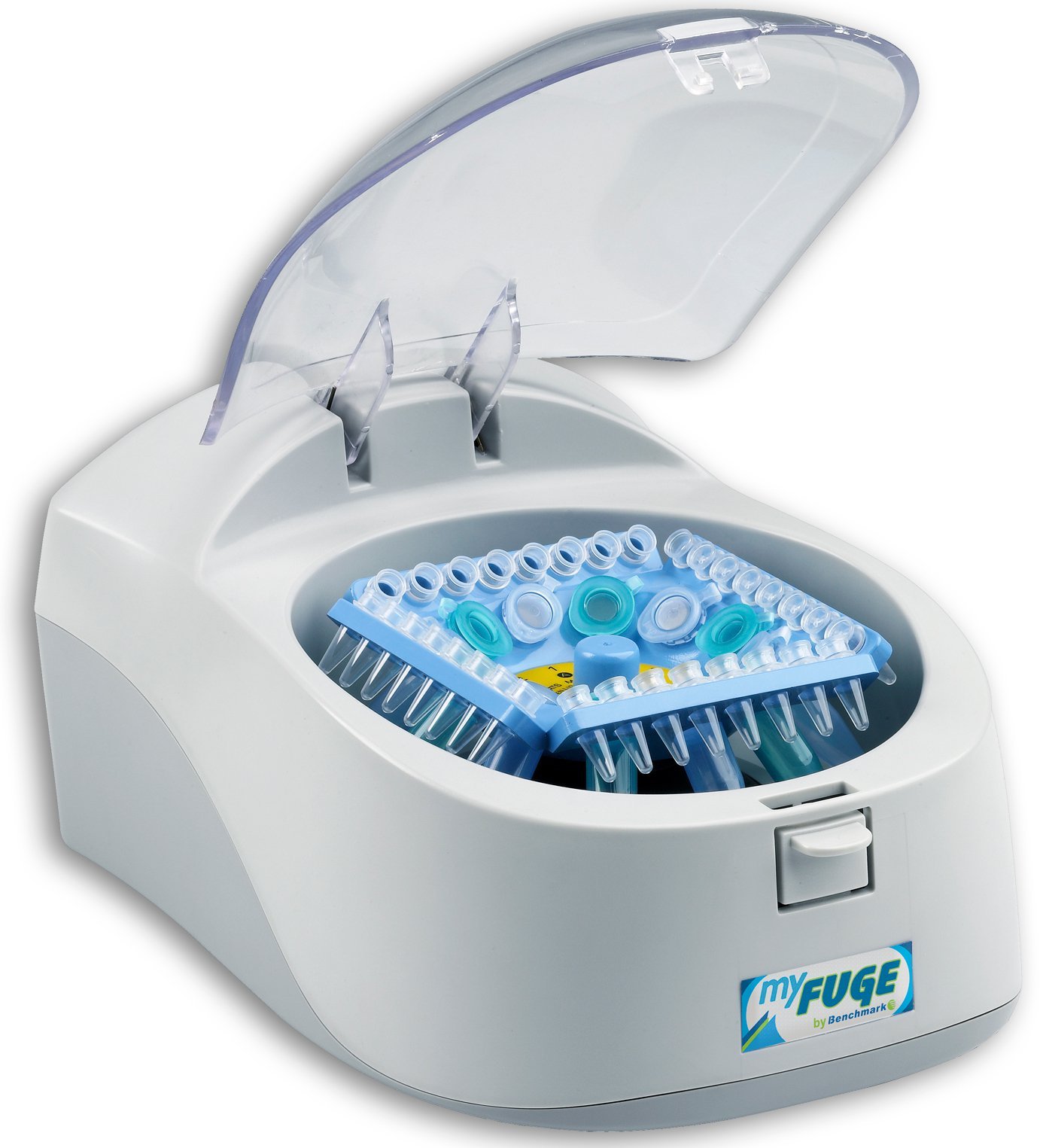 Unlike traditional mini centrifuges, the new MyFuge™ 12 eliminates the need to change rotors when switching between microtubes and PCR strips. The included, unique COMBI-Rotor™ is all that is required for running 12 microtubes and/or 4 PCR strips.