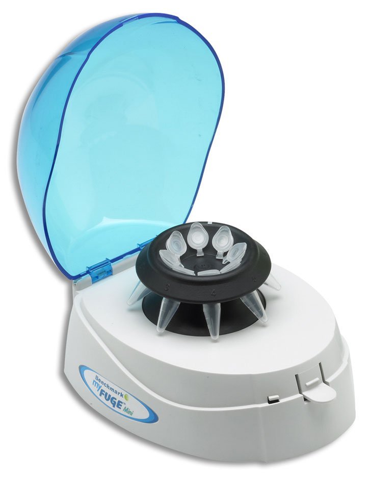 The MyFuge™ Mini centrifuge is a personal centrifuge that virtually fits in the palm of your hand. Ideal for quick spin downs of microtubes and PCR tubes, the MyFuge is extremely easy to use. Simply close the lid and the rotor instantly reaches 6,000 rpm. Open the lid, and the rotor quickly decelerates to a stop for removing samples.