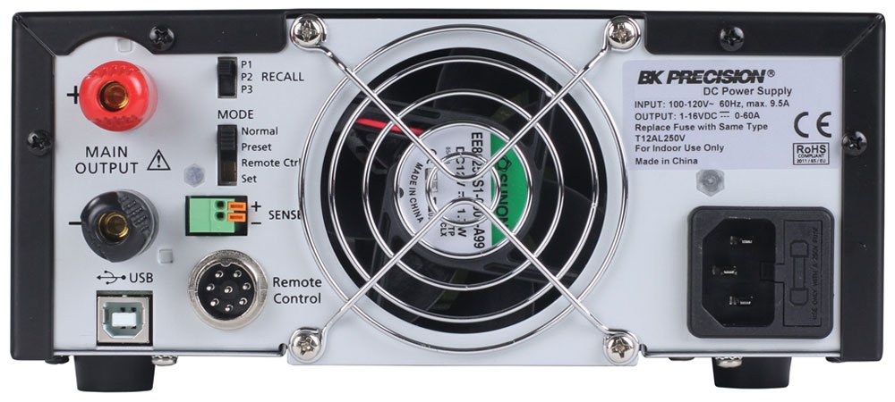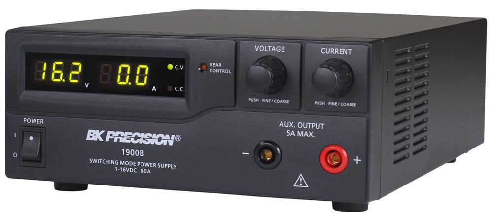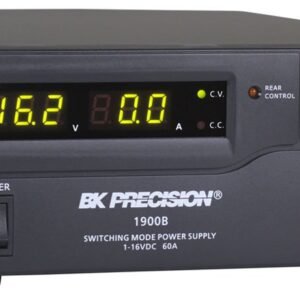 The BK Precision 1900B is a laboratory-grade switching mode DC power supply with high current output in a small form factor and lightweight package. The 1900B provides various configurations of high output voltage or high output current and makes setting voltage and current levels fast and precise through its dual action, coarse/fine rotary encoder control.