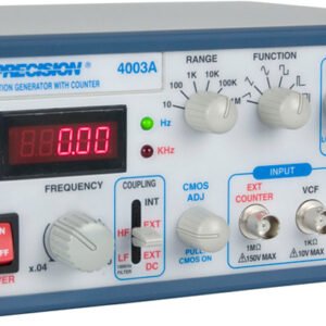 The 4003A is a 4 MHz sweep function generator. The sweep function offers linear or log sweep with variable sweep rates and widths. This model includes a 20 MHz 5-digit external frequency counter.