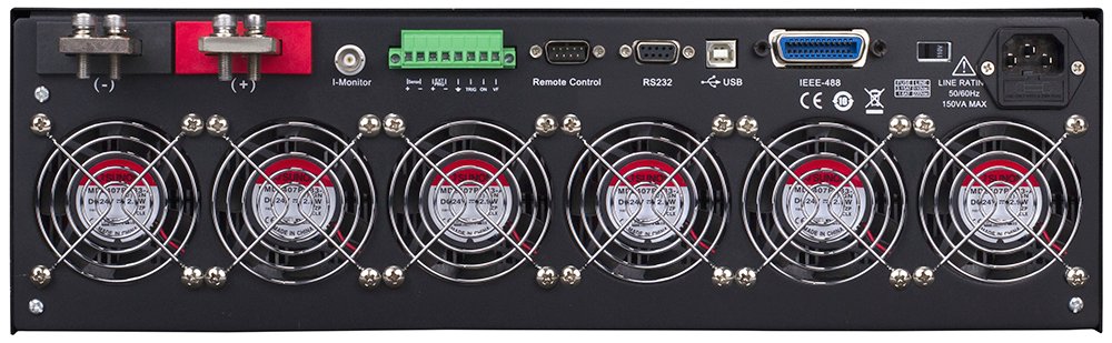 This DC electronic load can operate in constant current (CC), constant voltage (CV), constant resistance (CR), and constant power (CW) mode. The instrument provides flexible triggering capabilities, analog current control and monitoring, and standard USB (USBTMC-compliant), GPIB, or RS-232 serial interfaces for remote communication.