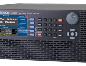 The 9830B Series programmable AC power sources provide high performance and low total harmonic distortion in a 3U form factor. The addition of positive and negative DC offset voltages expands the AC capabilities to operate in DC and AC+DC output coupling modes. The user can select built-in and user-defined harmonic waveforms or select from standard sine, square, or clipped sine outputs. The high output current crest factor and low input resistance are suitable for high inrush current measurements when evaluating capacitive or inductive loads. 3-Phase power can be achieved by connecting 3 units of the same model in a master and slave configuration using the optional TL983P 3-Phase sync adapters.