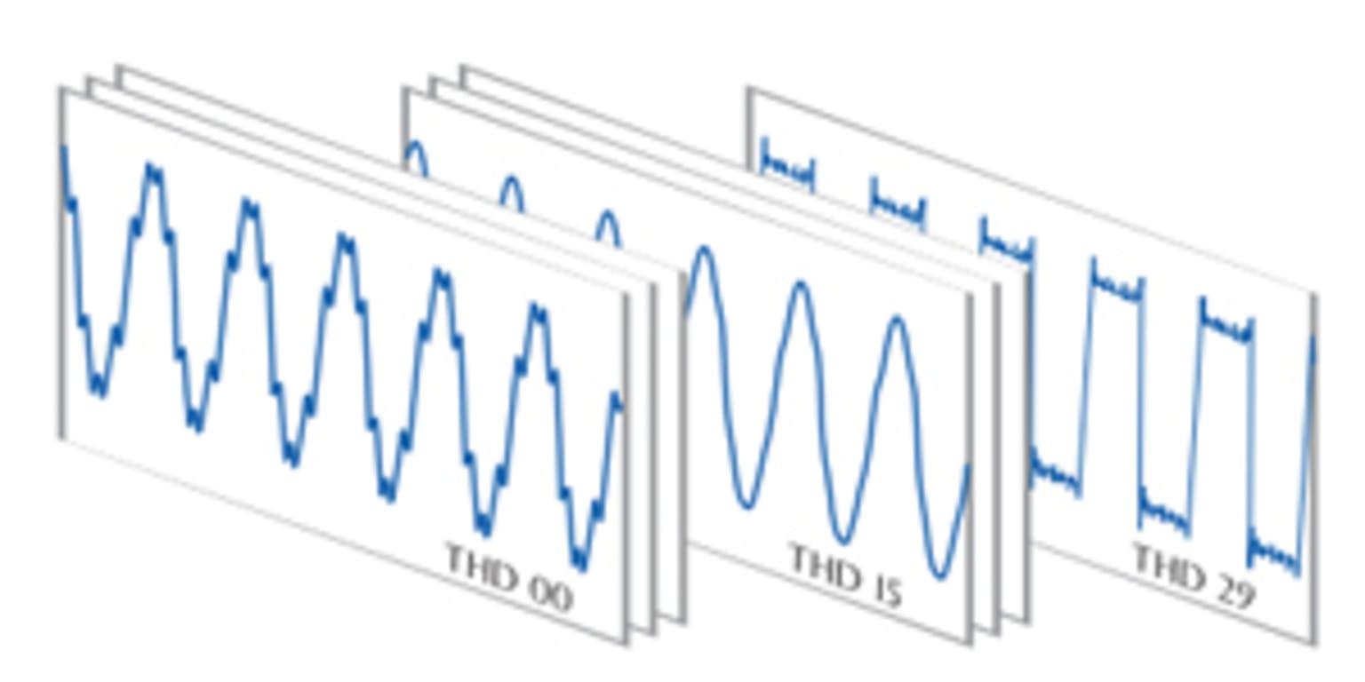Select from 30 built-in THD (total harmonic distortion) waveforms.