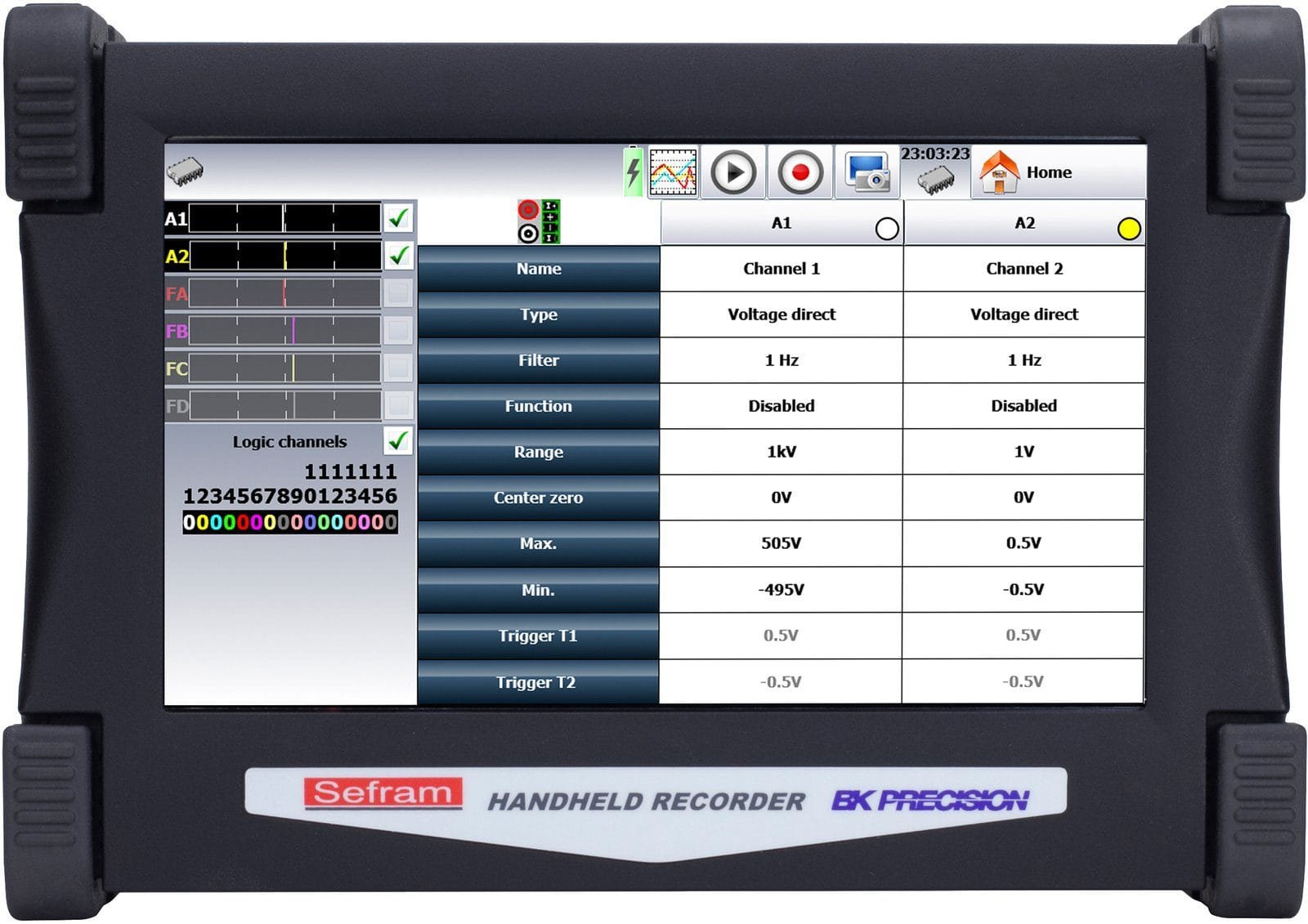 Each channel can record a different signal such as voltage, temperature, current or frequency simultaneously, using a common time base. The next-generation touchscreen features unlimited data scrolling, zoom in/out function as well as drag and drop delta cursors for precision measurements. measurements.