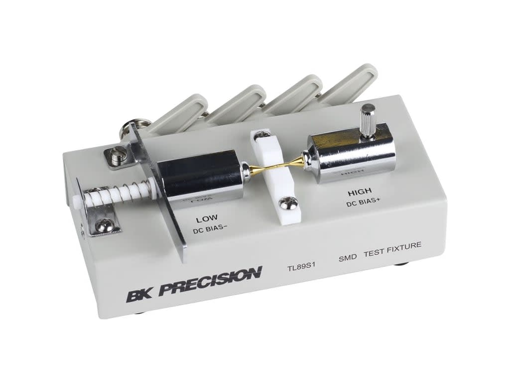 The BK Precision TL89S1 is an SMD (Surface-Mount Device) Test Fixture designed for use with bench LCR meters. This fixture allows for precise testing of surface-mount components such as resistors, capacitors, and inductors. It is ideal for use in electronics testing and component analysis, particularly in environments where accurate measurements of SMD components are critical.