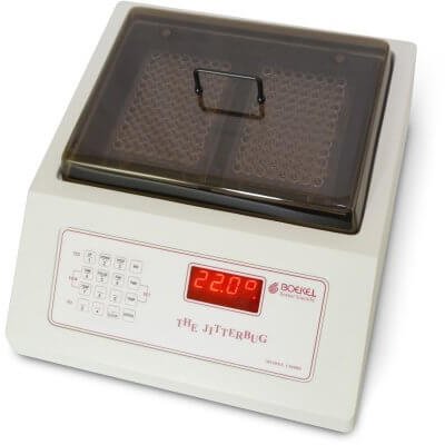 The Boekel Scientific Jitterbug, 130000, heated microplate shaker is ideal for Immunoassays like ELISA, PCR and other research procedures requiring heating and shaking of microplates. Includes inner lid to reduce the risk of contamination.