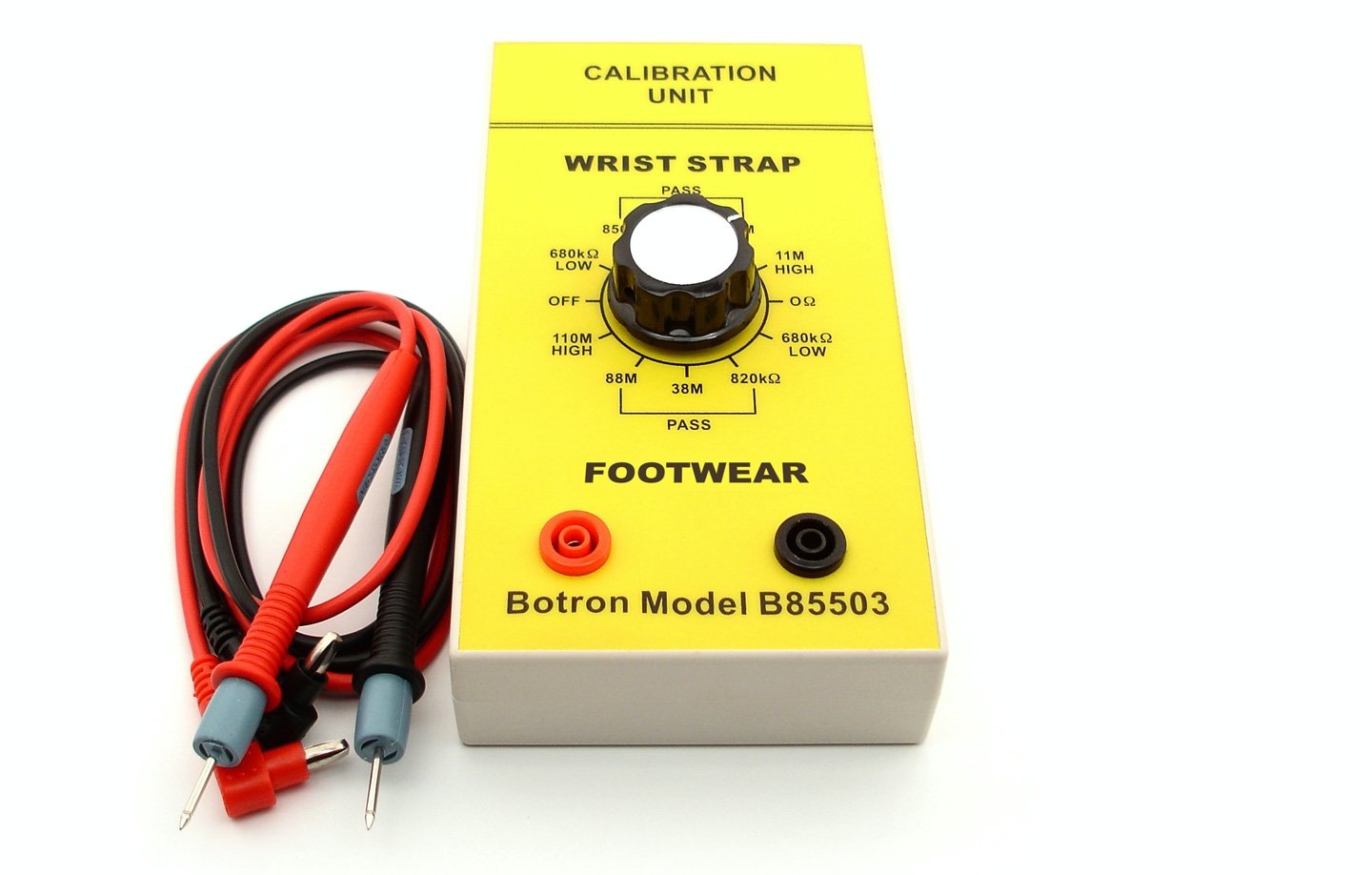 The Botron B85503 High-Quality Calibration Unit calibrates Botron wrist strap and footwear testers. The unit is designed to simplify the calibration process, with the rotation of the selector switch the user can easily check that testers are calibrated (excluding ELITE Test Systems).