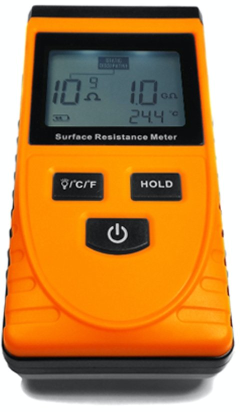 • Backlit LCD provides visual representation of surface resistance, conductive property and ambient temperature
