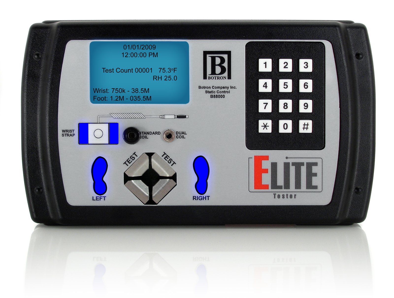 - Footwear: 200k – 1.5G Ohms (100% Adjustable test range)