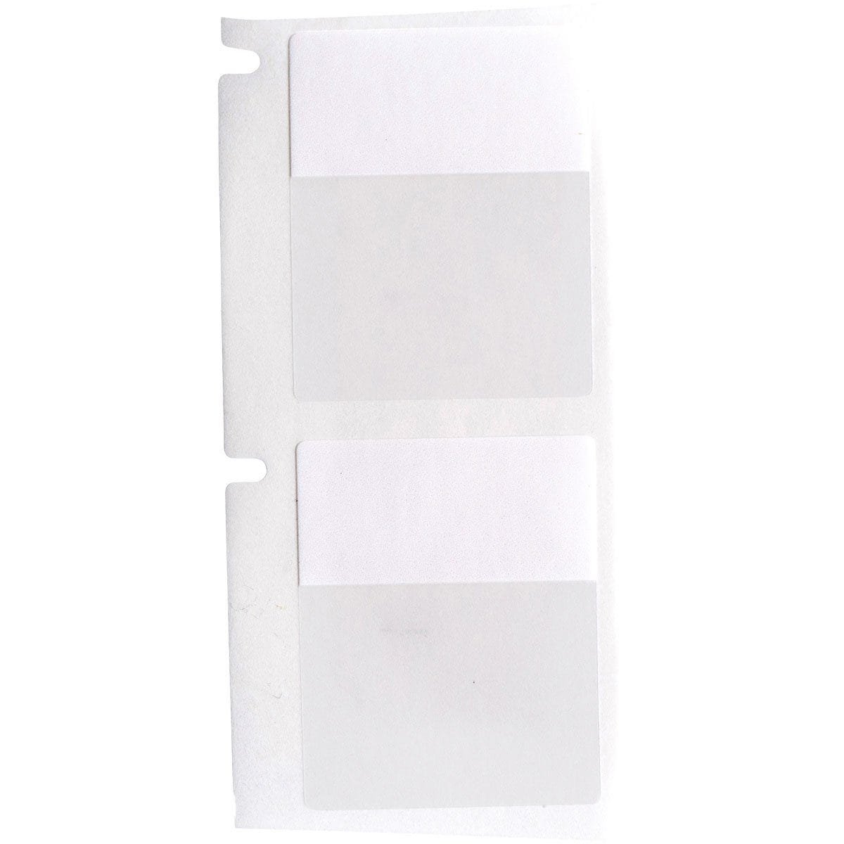 - Provided in a self-laminated format with a white printable zone and translucent overlaminating area to protect text
