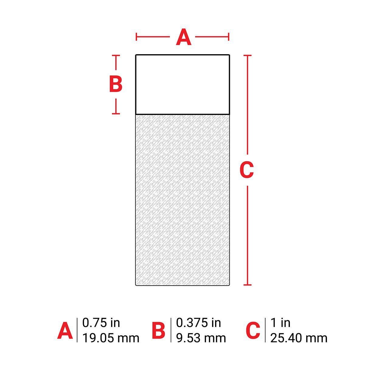 The Brady M6-18-427 is a roll of 250 self-laminating, vinyl wrap-around labels for use with Brady M6 and M7 printers. The labels have a printable area of 0.375-inch H x 0.75-inch W and label/tape size of 1-inch H x 0.75-inch W.