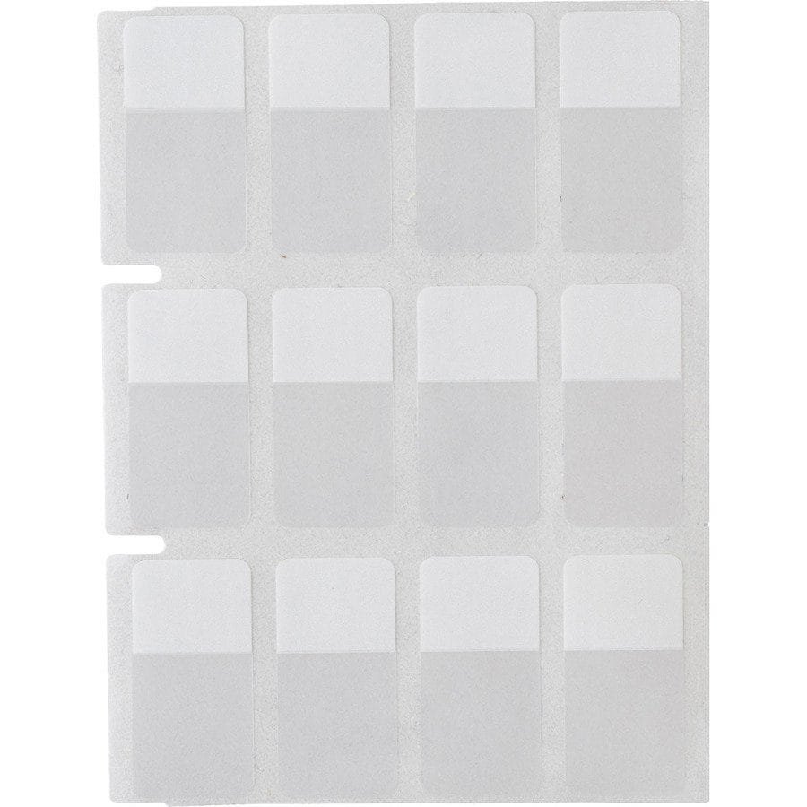 - Provided in a self-laminated format with a white printable zone and translucent over-laminating area to protect text