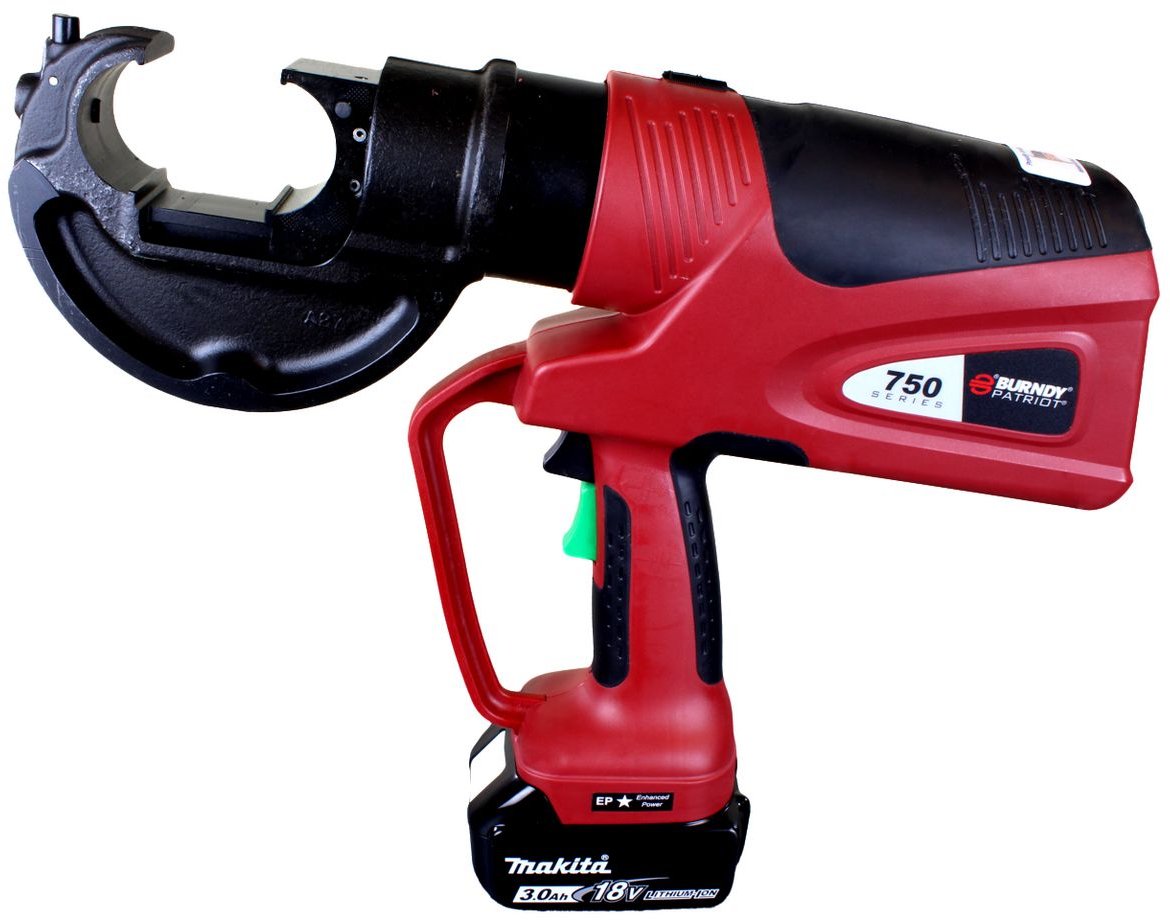 The Burndy Patriot PAT750 series is a hydraulic self-contained, 18V Lithium-Ion battery-actuated crimping tool featuring a C-head style for easy access and increased flexibility with 355° head rotation. The Burndy Patriot PAT750 is used with U-dies and features a patented T-track alignment guide for HYGROUND as well as other asymmetrical connectors. The crimping tool is ergonomically balanced for ease of use and has a manual release trigger that allows partial retraction for quick, consistent crimps.