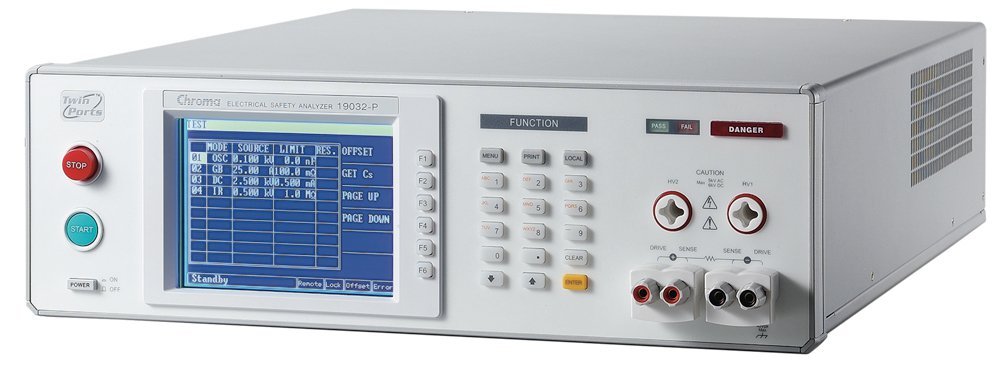 The 19032 series combines Hipot, Insulation Resistance (IR), Ground Bond (GB), Leakage Current (LC)/AC LC/DC LC and Dynamic Function Tests. Space savings can be up to 50% of production line space, through not purchasing multiple safety test instruments. The 19032 is able to increase the efficiency of electrical safety testing during manufacturing and reduce associated labor costs.