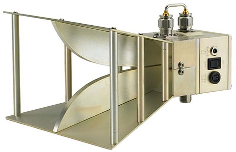 The AHA-118 is a broadband, linearly polarized Double Ridge Horn Antenna with built-in, 40 dB gain, low noise preamplifier. This active antenna operates over the frequency range of 700 MHz to 18 GHz, with excellent efficiency from 1 GHz to 18 GHz.
