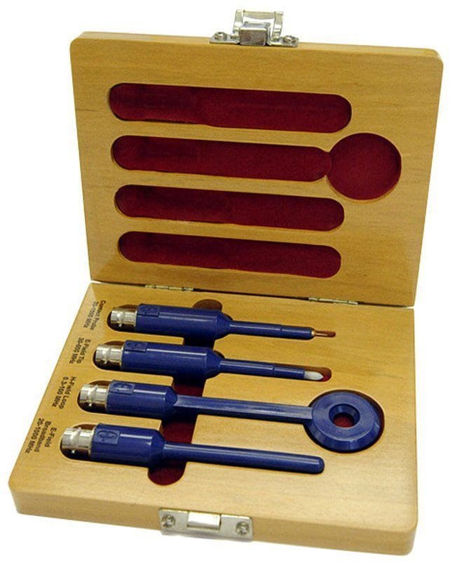 The PS-500 is a Near Field Probe set consist four probes and a custom storage case. Performance and ease of use were designed into this product. The unique design allows easy access for tight or hard to reach places while reducing the effect of hand position or cable placement.