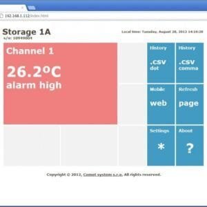 - Temperature/humidity and atmospheric pressure monitoring of storage, history data to Comet Database or 3rd party SCADA system.