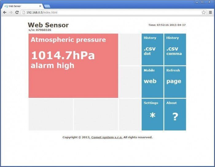 Web Sensor Remote Barometer with Ethernet Interface