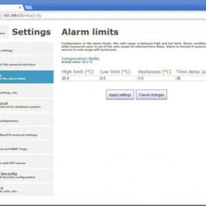 Measured and calculated values are displayed on a two-line LCD display or can be read and then processed via Ethernet interface. The following formats of Ethernet communication are supported: www pages with user-design possibility, Modbus TCP protocol, SNMPv1 protocol, SOAP protocol, and XML. The instrument may send also a warning message if the measured value exceeds the adjusted limit. The messages can be sent up to 3 e-mail addresses or to Syslog server and can be sent by SNMP Trap too. The alarm states are also displayed on the websites. The device setup can be made by the TSensor software.