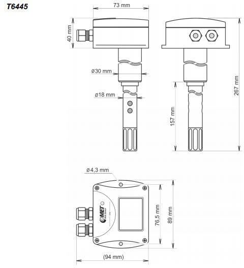 The T6445 is a t-line Web sensor for measuring temperature, humidity, and CO2. The T6445 uses built-in temperature, humidity, and CO2 sensors. The Web Sensor is equipped with an LCD display for showing current measured values. The Web Sensor can be integrated into the control systems of different manufacturers by connecting directly to a computer network using ModBus RTU, ARION, Advantech ADAM. The device setup can be made by the TSensor software which can be downloaded for free from the manufacturer’s website. One advantage of Web Sensors is the configuration of settings via a web interface.