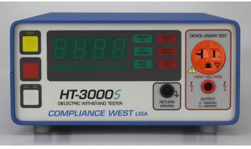 Compliance HT-3000S – Hipot Tester, 0-2000Vac @ 20mA, 0-2800Vdc @ 5mA and Adjustable Ground Continuity, UL Listed