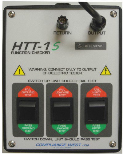 - Works with any manufacturer’s Dielectric Withstand or Ground Continuity Tester. The HTT-1S simulates the failures and your tester should return results consistent with the switch settings on the front panel of the HTT-1S