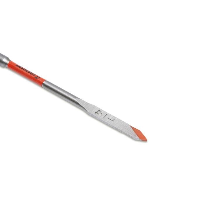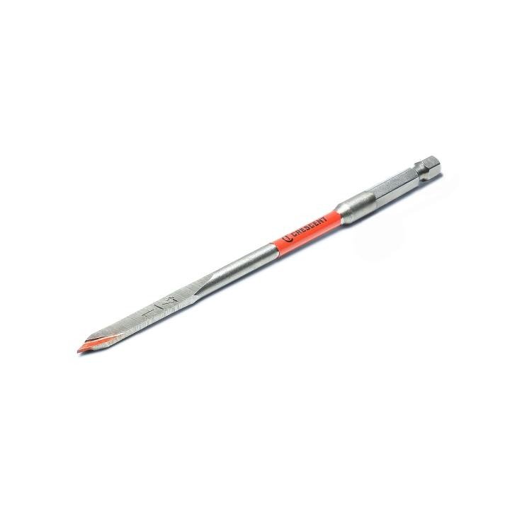 The Crescent Flat Spade Bit features a reinforced tip geometry for increased durability, longer life, and a smooth cut. The advanced cutting grooves ensure easier wood boring along with fast and easy chip removal for efficiency on the job. A reinforced shank with a torsion zone allows for aggressive cuts to be made at rapid speeds. The 1/4″ quick-release hex shank is impact-rated for use in cordless and corded impact and drill drivers.