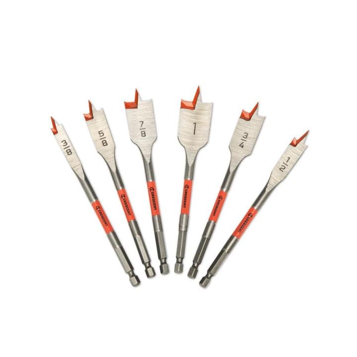 Drill Bit Set, Flat Spade, 6-Piece