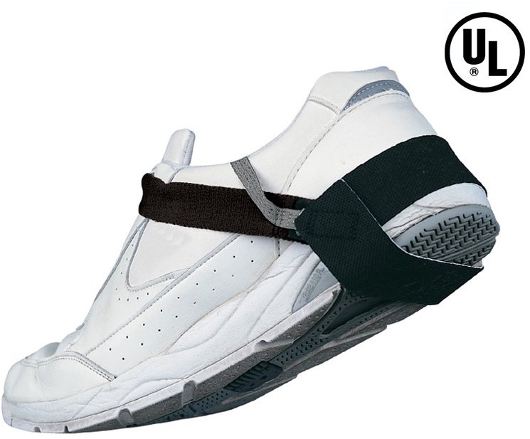 This DESCO economy heel grounder with hook and loop attachment is adjustable and has a 1 megohm resistor. It is designed for use with most standard shoes and can be easily adjusted.