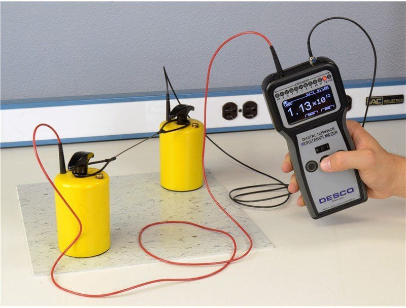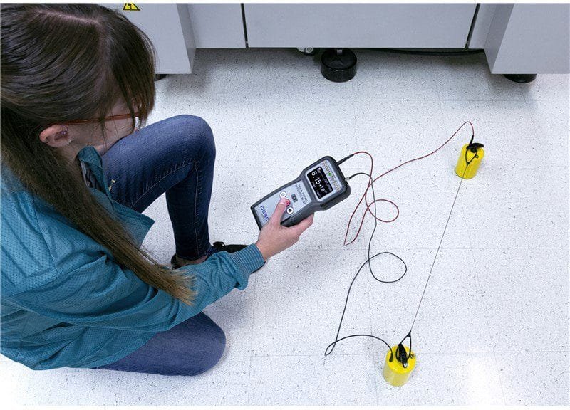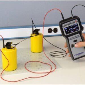- Spaces the 5 lbs electrodes to 10″ and 36″ for resistance point-to-point (Rtt) measurement requirements of ANSI/ESD S.1 and ANSI/ESD S4.1