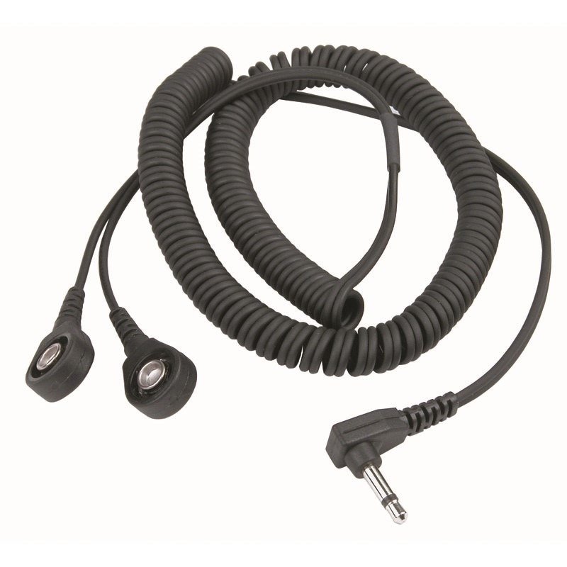 The Desco 19868 Dual-Wire coil cord provides redundancy even if one conductor is severed, operator has reliable path-to-ground with other wire. Used with resistive loop technology continuous monitor, continuously verifies the proper resistance to ground of the operator. The custom manufactured right angle mono-plug reduces chance of accidental disconnects providing more secure ground connection. Coil cord with molded 1 Megohm current limiting resistor on both ground paths to protect user from shock due to inadvertent contact with line voltage.