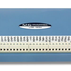 The USB-1808X features eight high-precision, simultaneous analog inputs, 18-bit resolution, 200 kS/s/ch sample rate, two analog outputs, 4 digital I/O, two counters, and two quadrature encoder inputs.