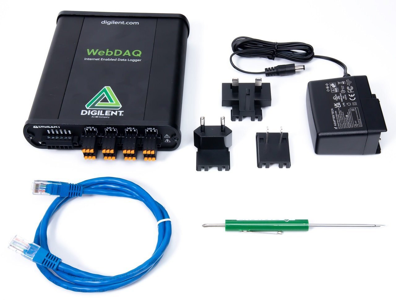 There are three devices in the WebDAQ Series. Devices are available to log multiple signal types including voltage (up to +/-60 V), thermocouples, IEPE-based sensors like accelerometers, current, RTDs, resistance, and bridge-based sensors.