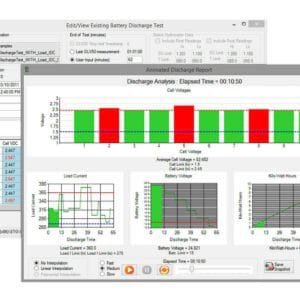 The DLV-Ultra kit can also be used to perform a full discharge test on up to 256 cells by recording up to 11 time-stamped voltage readings for each cell, along with time-stamped load current readings and initial and/or final SG readings via the SG-Ultra. All test data can be uploaded to a PC using the included Winmeter 5.1 Battery Analysis Software.