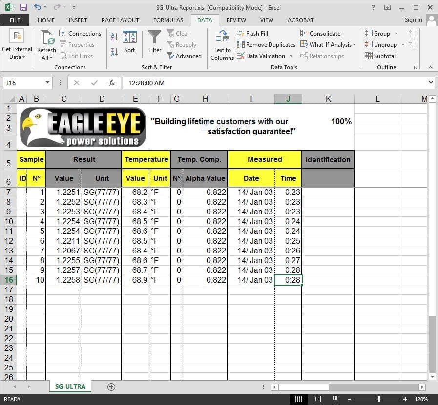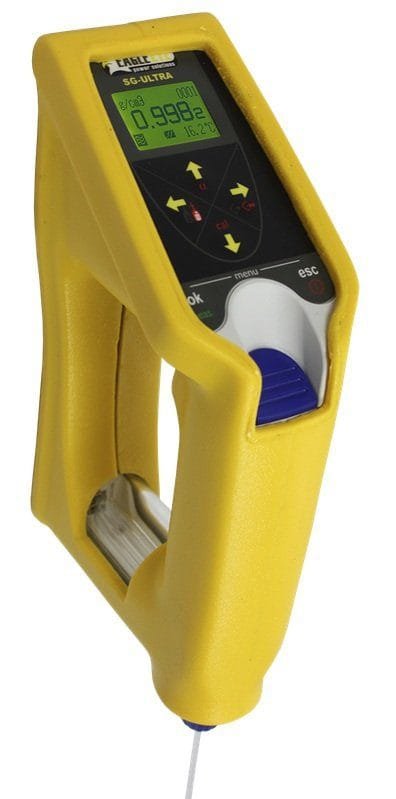 Store up to 1,100 measurement results internally with the SG-Ultra digital hydrometer/density meter. Results include sample identification, measurement unit, temperature correction coefficient, instrument identification and date & time. Results can be downloaded to a printer or PC easily with included infrared adapters. Every SG-Ultra comes pre-assembled and ready to test out of the box. Reliable results appear in seconds – just immerse the sampling tube, pull the trigger, and read the final result. Review and trend these results with included management software.