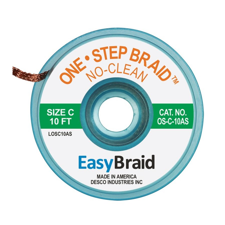 Easy Braid OS-C-10AS Solder Wick, No-Clean, 0.075″ x 10 ft, Size C, Green Label, 25/Pkg.